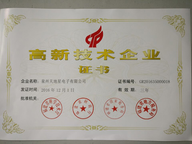 2016高新技術(shù)企業(yè)證書(shū)