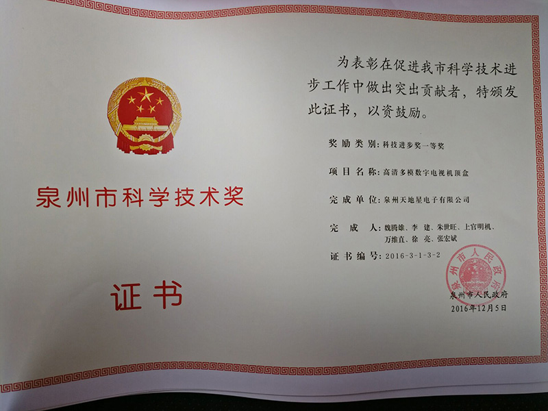 2016泉州市科學(xué)技術(shù)獎(jiǎng)