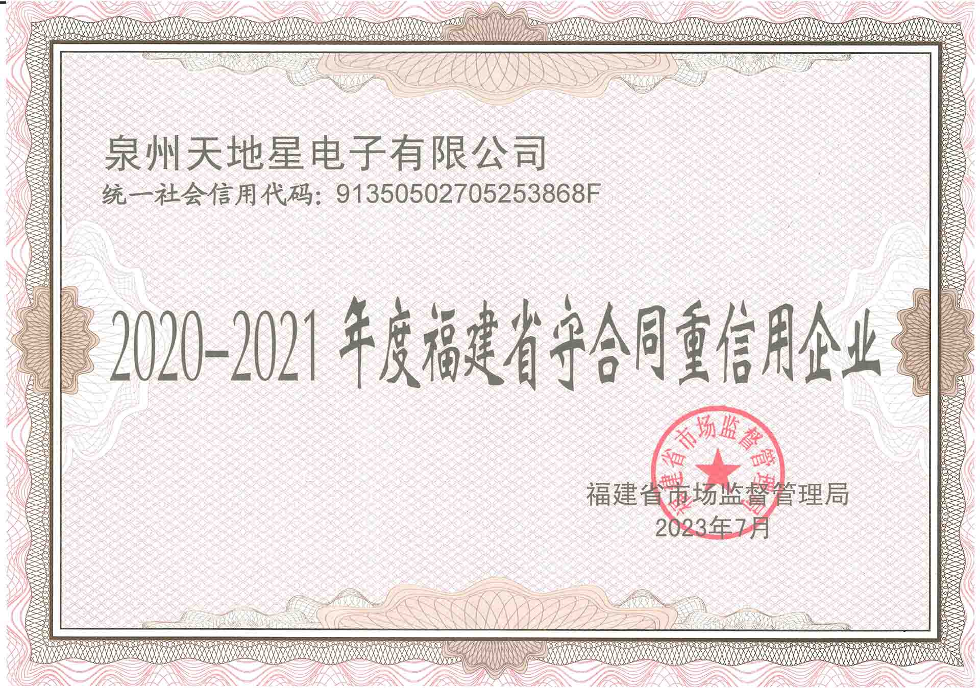 2020-2021福建省守合同重信用企業(yè)